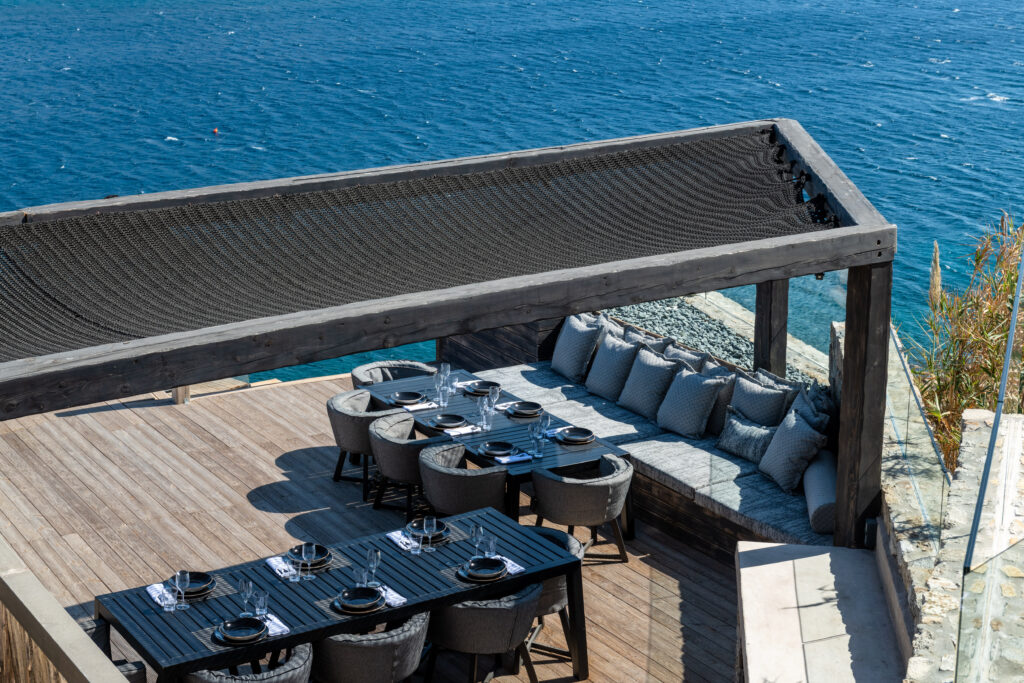 complemented by a sunset lounge area that invites aperitifs under painted skies. Adjacent,